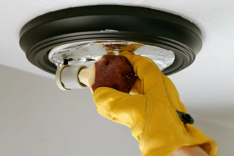 Safely remove a broken bulb with a potato. Press the cut side onto the base, twist counterclockwise, and let the potato grip the glass for you.
