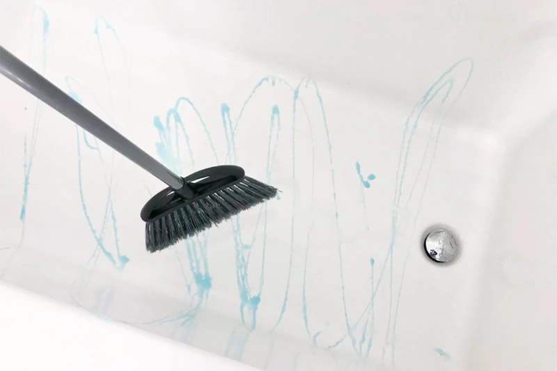 Stop straining your back scrubbing the bathtub. Spray dish soap across the surface and use a broom to scrub effortlessly. The long handle and bristles tackle grime quickly, leaving your tub sparkling with minimal effort.