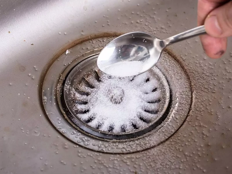 Clear clogged drains naturally with salt. Pour it down the drain, let it sit, and flush with warm water. It scrubs away debris and leaves your pipes flowing freely.