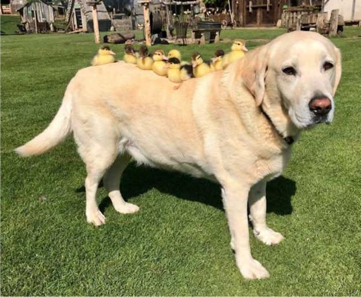 3. After nine ducklings lost their mom, this castle dog became their guardian.