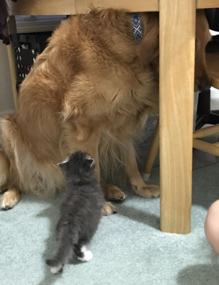 Tiny size, big attitude. The miniature kitten rules while the giant dog yields, delighting onlookers. This role reversal proves boldness and personality often outweigh mere size in the animal world.