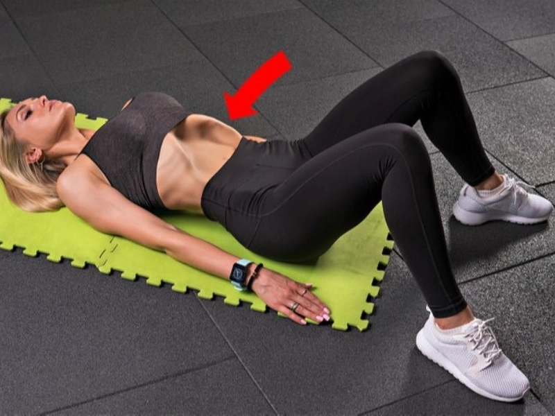 Lie on your back with knees bent and arms relaxed. Perform this move on an empty stomach. Inhale deeply, then exhale fully through your mouth while pulling your navel toward your spine. Gravity assists in deepening the contraction. Hold for 15 seconds, then release. Gradually work up to 60 seconds if comfortable. Repeat 3–5 times. Aim for at least 2 minutes per session. Caution: This exercise increases abdominal pressure. Avoid if you have heart conditions, herniated discs, asthma, or digestive issues.