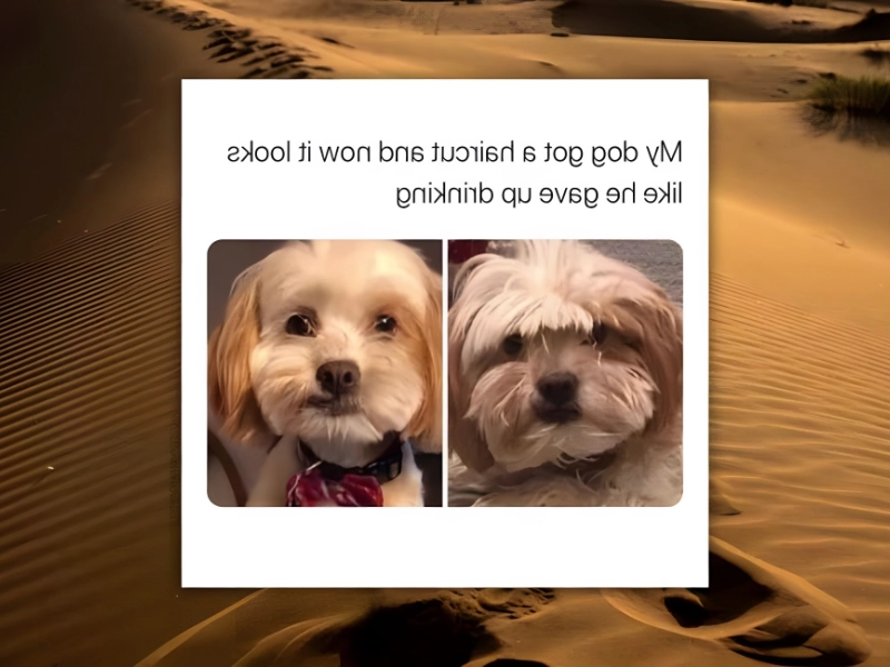 After a trim her dog stopped mock drinking. Before shaggy after sleek.