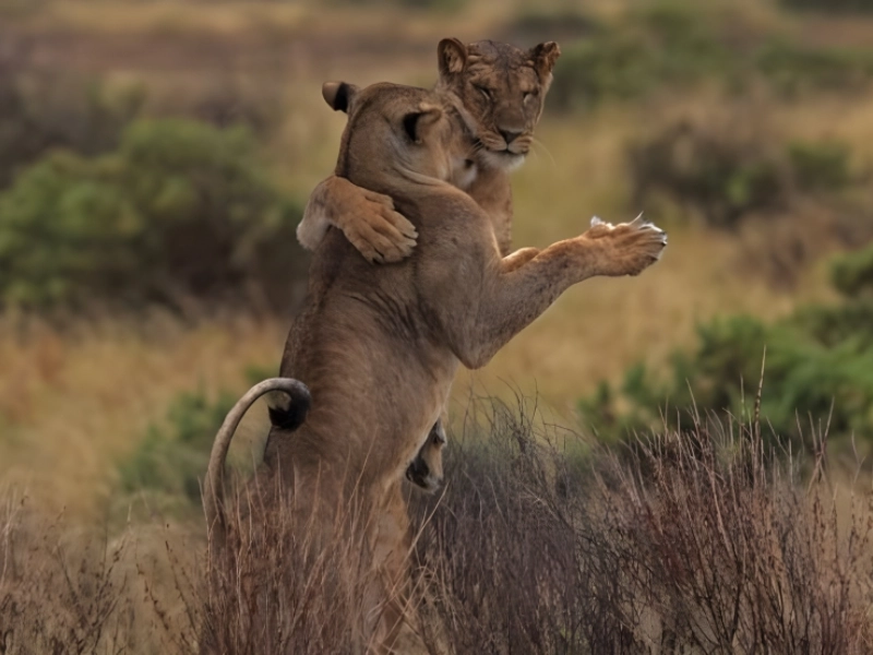 Même au milieu d'un désaccord apparent, la beauté peut être découverte et appréciée. Cette photographie immortalise un moment de tension et le transforme en une danse gracieuse, où le mouvement et l'émotion se fondent harmonieusement en art. Les animaux, capturés à mi-mouvement, semblent oublier leur querelle alors qu'ils deviennent partie intégrante d'une histoire plus grande - une histoire d'harmonie, de rythme et d'expérience partagée de l'existence. Cette image constitue un témoignage du pouvoir transformateur de la perspective et de la magie qui se produit lorsque nous cherchons l'extraordinaire dans le quotidien.