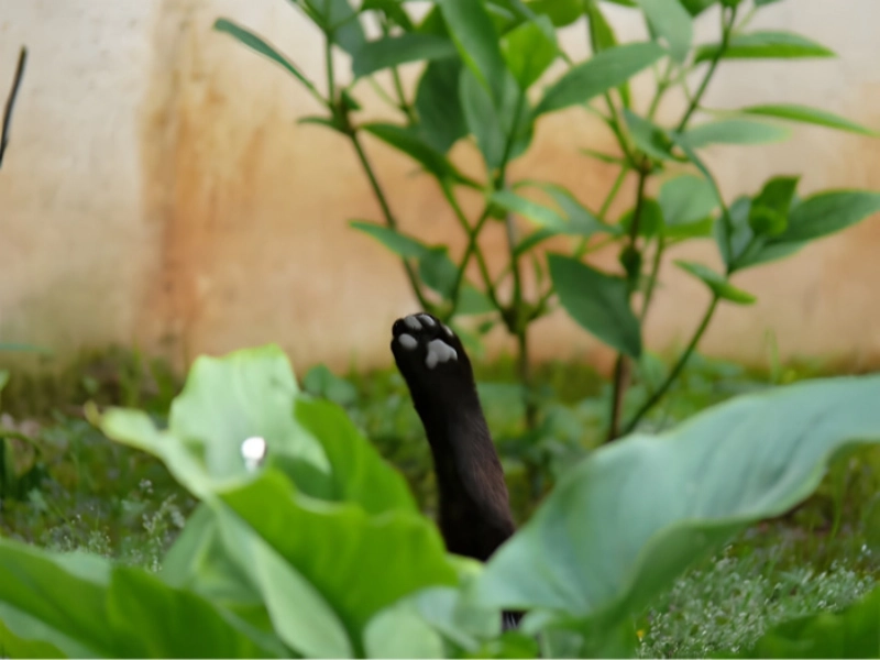 Quand votre chat se détend paisiblement dans l'herbe mais veut quand même taper dans la main