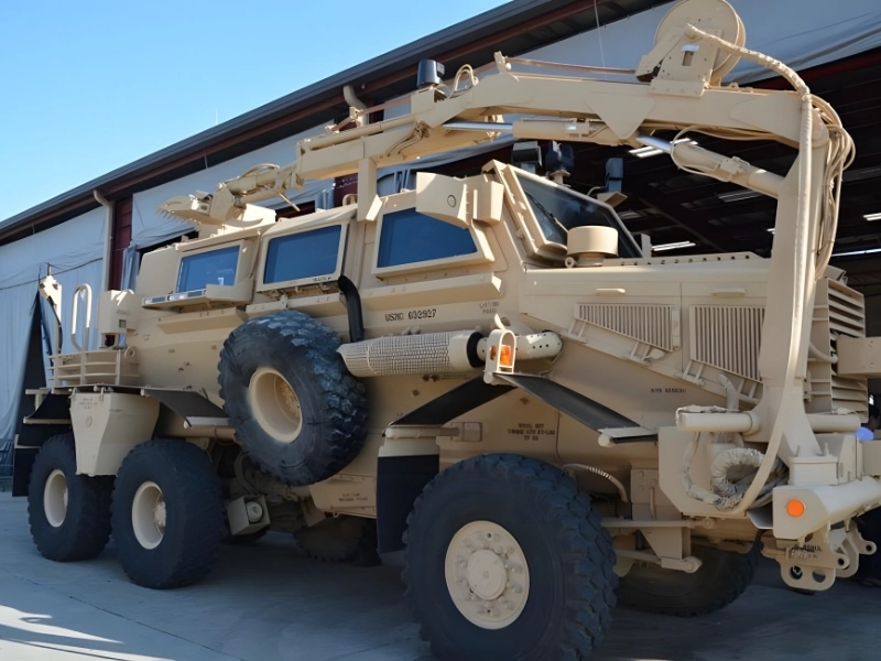 Le véhicule de déminage blindé Buffalo, fabriqué par Force Protection, Inc., entra en service en 2003 et est évalué à environ 10 millions de dollars. Comme plus grand véhicule de Force Protection, le Buffalo est spécifiquement conçu pour le déminage et l'élimination d'engins explosifs, présentant une protection particulièrement avancée. Ce véhicule à six roues offre une protection anti-mines en ligne centrale pour le corps et les roues. Avec quinze pouces de garde au sol, il peut gérer des terrains particulièrement difficiles tout en restant parfaitement efficace et opérationnel.