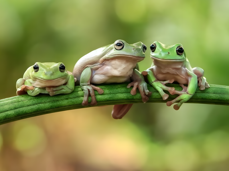 Au bord de l'eau, les grenouilles se rassemblent en grands groupes pendant la saison des amours, créant un chœur de coassements audible de très loin. Leurs appels synchronisés ressemblent souvent à une symphonie, remplissant l'air d'une mélodie rythmique. Bien que le son puisse être assourdissant de près, c'est une incroyable démonstration de la capacité de la nature à harmoniser même les plus petites créatures.