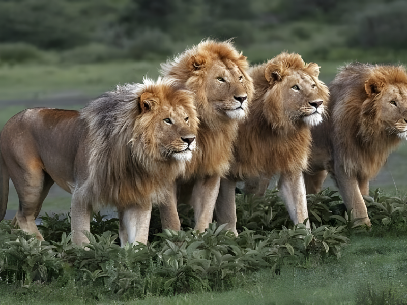 Un groupe de lions est non seulement une force redoutable mais aussi une unité sociale fascinante. Occasionnellement, le groupe ronronnera ensemble, créant un son profond et résonnant qui traverse leur territoire. Bien que cette démonstration d'unité soit impressionnante, c'est aussi un rappel de leur puissance et domination. Observer ce comportement à distance sûre est un privilège, car s'approcher trop près pourrait rapidement devenir risqué.