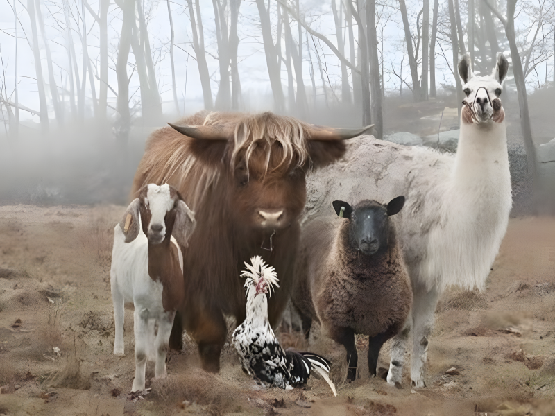 Ce groupe unique est mené par nul autre qu'un coq majestueux, dont la présence imposante et l'attitude audacieuse montrent clairement qu'il est le chef incontesté. Les coqs sont particulièrement connus pour leur nature protectrice, gardant un œil vigilant sur les menaces potentielles et assurant constamment la sécurité de leur basse-cour. Il n'est pas surprenant que ce groupe excentrique compte entièrement sur leur leader à plumes pour être guidé et protégé en toute sécurité.