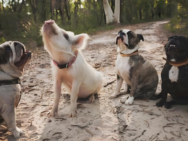 Parmi ce groupe de bouledogues français, un petit cochonnet confiant semble avoir trouvé sa place. L'attitude assurée du cochonnet se fond parfaitement avec la nature joueuse et curieuse des chiens, créant une dynamique réconfortante et humoristique. C'est un délicieux exemple de la façon dont des animaux d'espèces différentes peuvent former des liens inattendus.