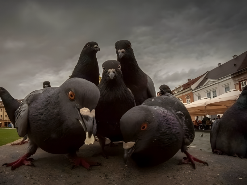 Ces pigeons semblaient prêts pour un affrontement dramatique, leurs plumes hérissées et leurs yeux fixés avec détermination. Alors que les tensions étaient à leur comble, une simple miette de pain fut jetée parmi eux, détournant instantanément leur attention et désamorçant complètement la situation. C'est un rappel comique de la facilité avec laquelle les priorités peuvent changer dans le monde animal !