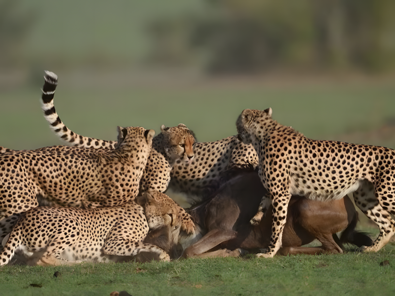 Quand un groupe de guépards se rassemble, leur vitesse et stratégie combinées les rendent presque imbattables. Ces chasseurs experts comptent sur leur coordination incroyable pour déjouer les proies, laissant peu de chances de s'échapper. Observer un groupe de guépards en action est un spectacle époustouflant de travail d'équipe et de puissance brute, nous rappelant pourquoi ils sont les sprinteurs ultimes de la nature.