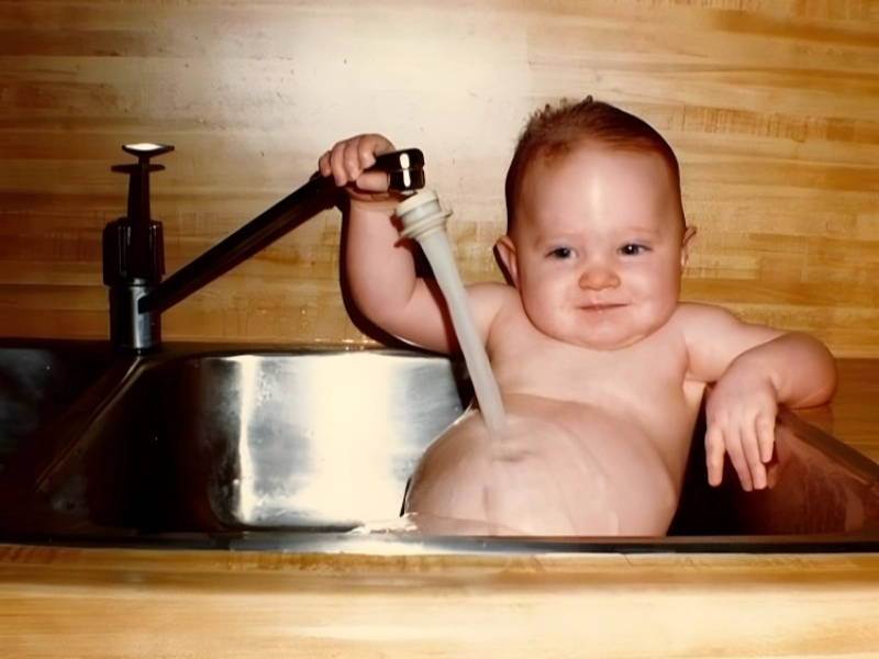 Ce petit garçon semble parfaitement à l'aise dans sa situation. La photographie montre vraisemblablement un enfant se relaxant d'une manière que seuls les enfants peuvent maîtriser - peut-être confortablement étalé dans un bac à jouets coloré ou paisiblement endormi dans une position particulièrement amusante et improbable. Son confort évident et son attitude naturellement insouciante sont simultanément drôles et quelque peu enviables, nous rappelant la joie pure de l'enfance et cette capacité remarquable à trouver la paix et le bonheur n'importe où et dans n'importe quelle circonstance.
