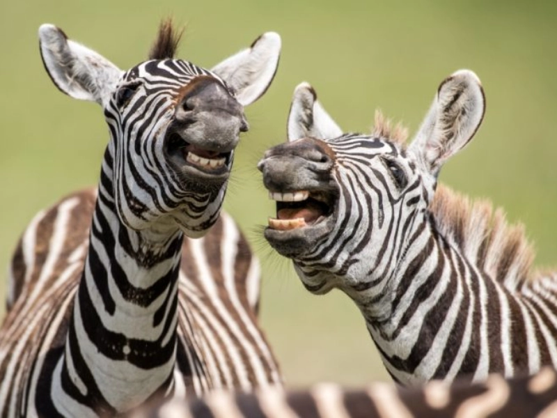Ces zèbres sont des amuseurs-nés, toujours prêts à divertir. Que ce soit leurs interactions joueuses ou leurs poses parfaitement synchronisées, ils savent comment monter un spectacle. Cette photo capture leur sens de l'amusement et de la camaraderie, nous rappelant la joie qui vient simplement d'être soi-même.