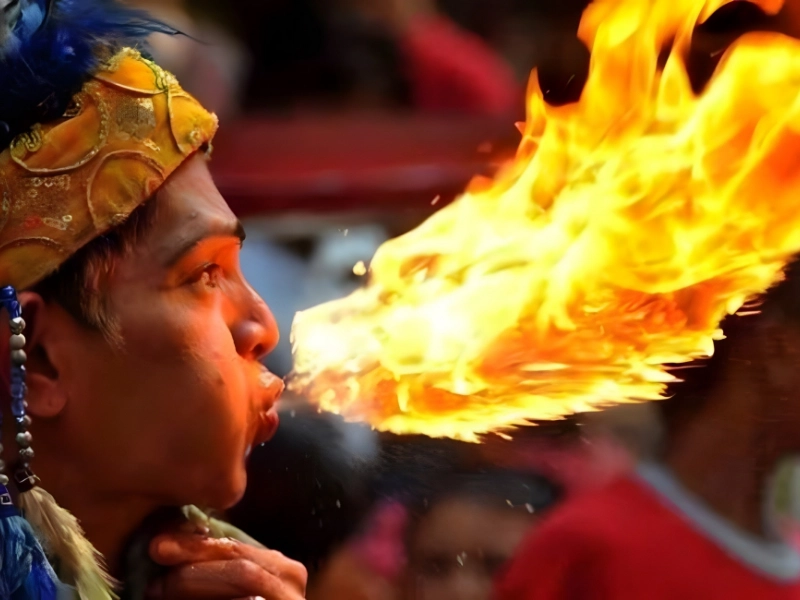 This fire performer’s burst of flame took the unmistakable shape of a dragon’s head. It’s a breathtaking coincidence, leaving everyone wondering how it happened.